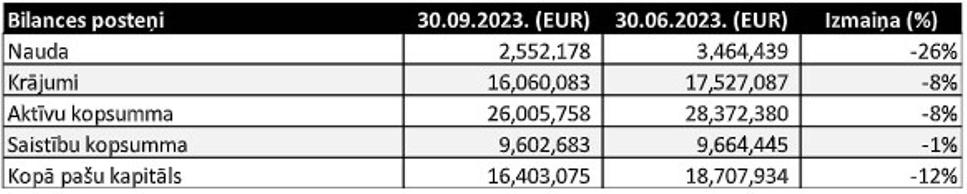 No bilances aktīvu posteņiem vērojams, ka Grupas naudas apjomi pēdējā ceturkšņa laikā ir nedaudz samazinājušies (par 0.9 milj. eiro). Naudas līdzekļi visticamāk izlietoti biznesa procesu nodrošināšanas un attīstības vajadzībām. Tāpat pēdējā ceturkšņa laikā samazinājušies arī krājumi (par aptuveni 1.5 milj. eiro), ko gribētos vērtēt pozitīvi, jo tas liecina par efektīvu kapitāla izmantošanu šajos sarežģītajos tirgus apstākļos.